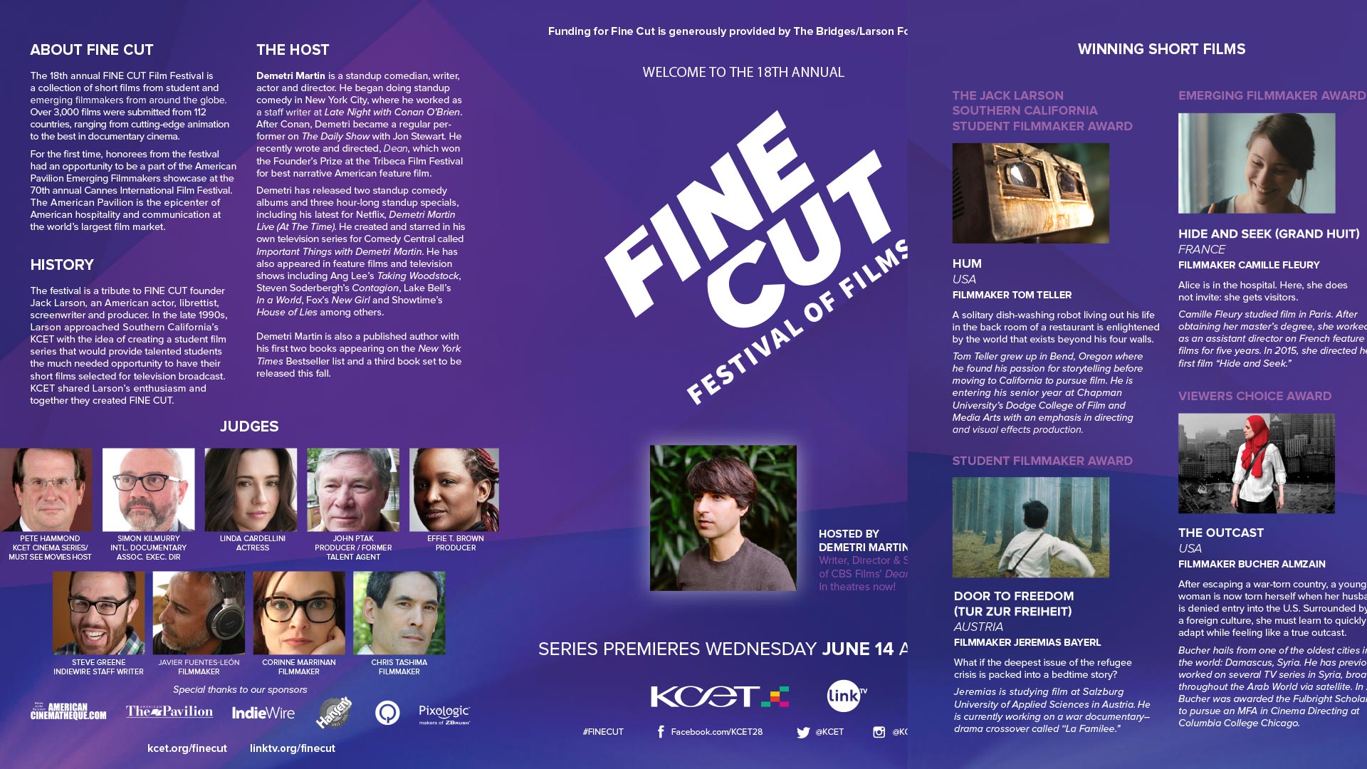 The Fine Cut Festival of Films is a collection of film shorts from the world’s best student and emerging filmmakers. Over 3,000 shorts were received from 112 countries eligible for awards in the competition, ranging from cutting-edge animation to documentary to narrative.
